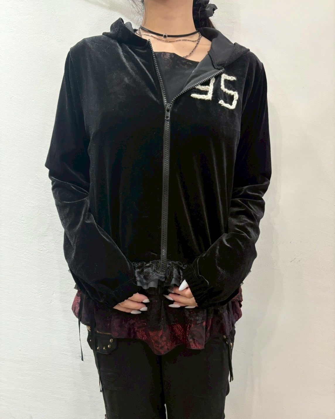 "remake" numbering velor zip up hoodie