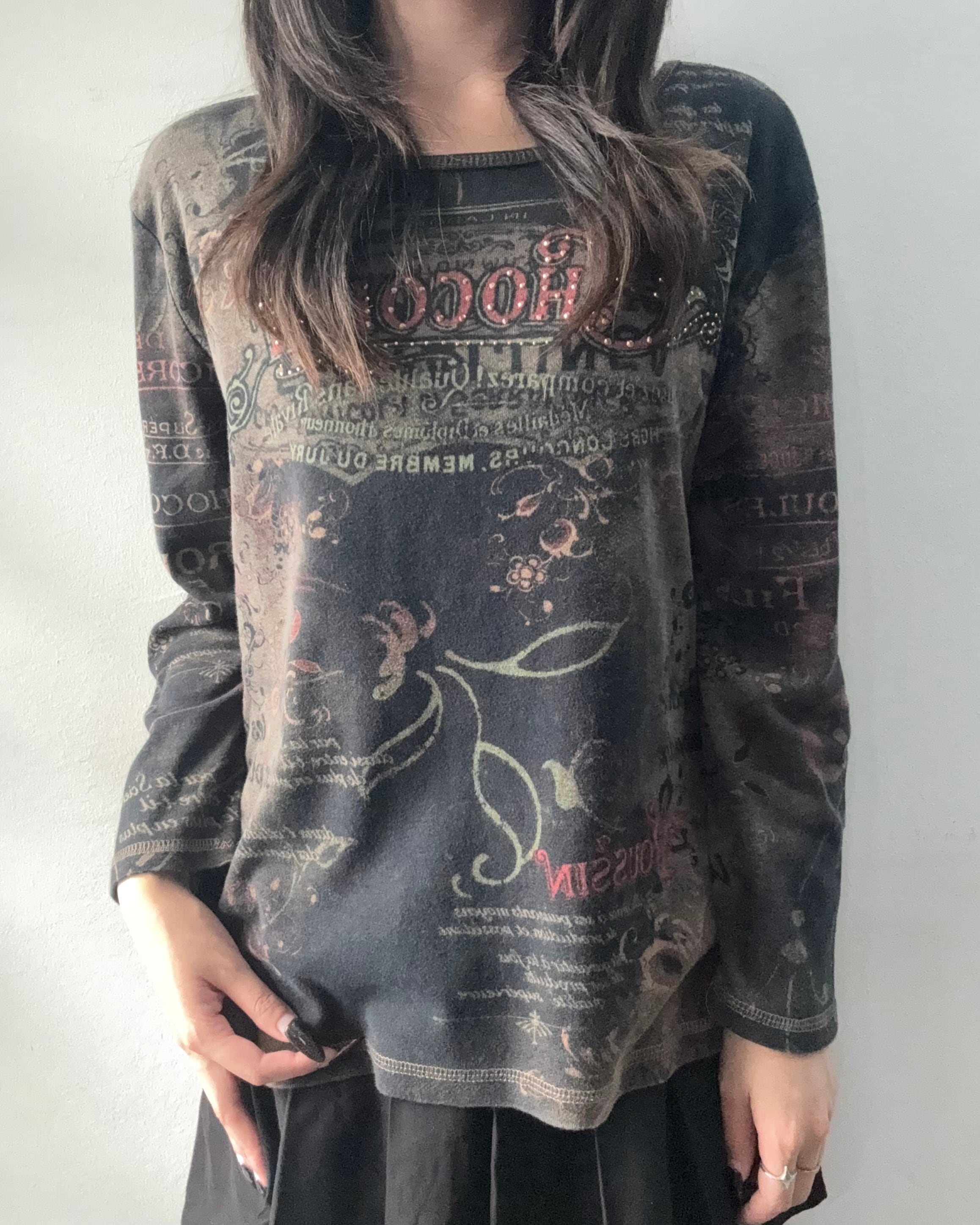 grunge print long sleeve tee