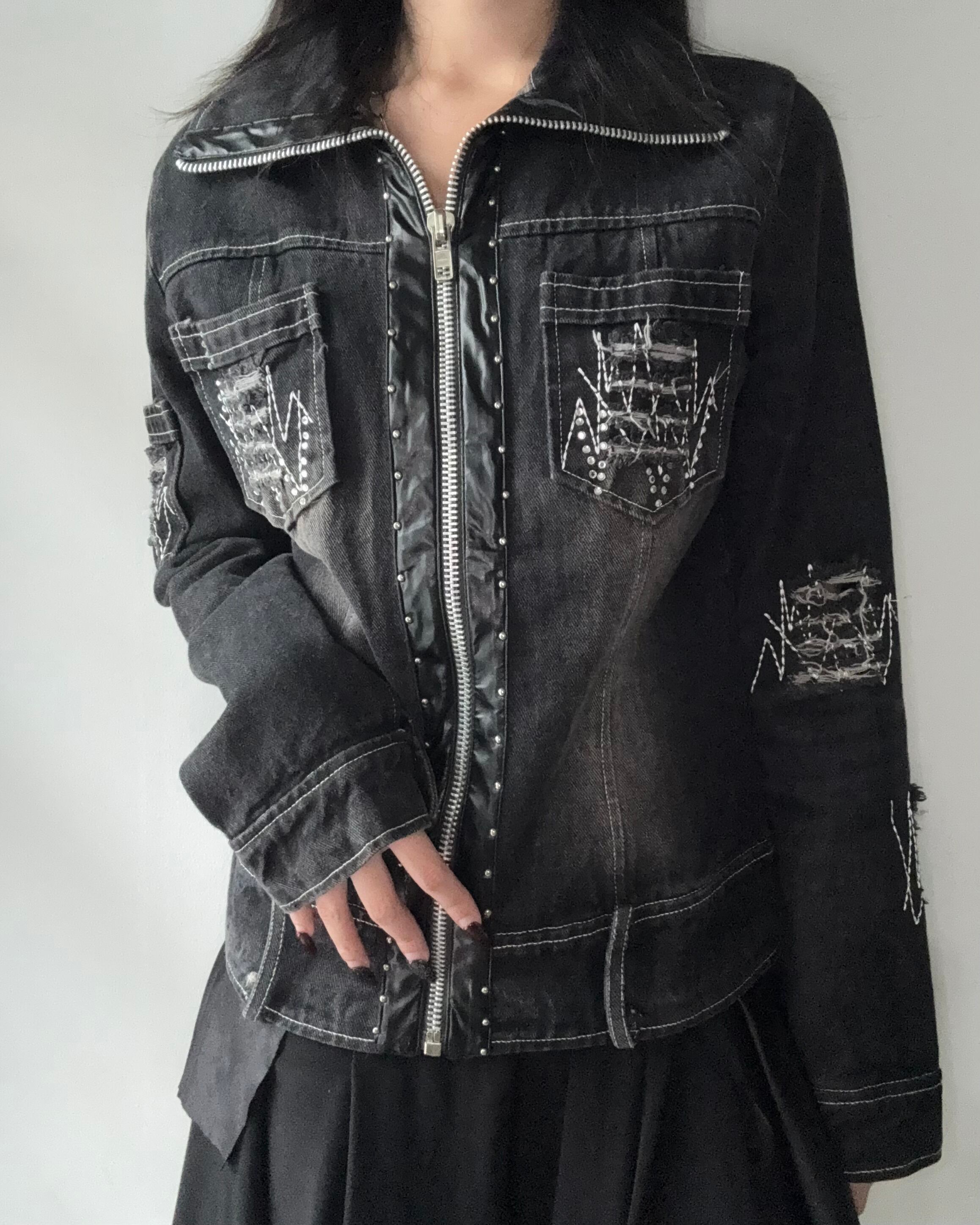 embroidery & rhinestone detail denim jacket