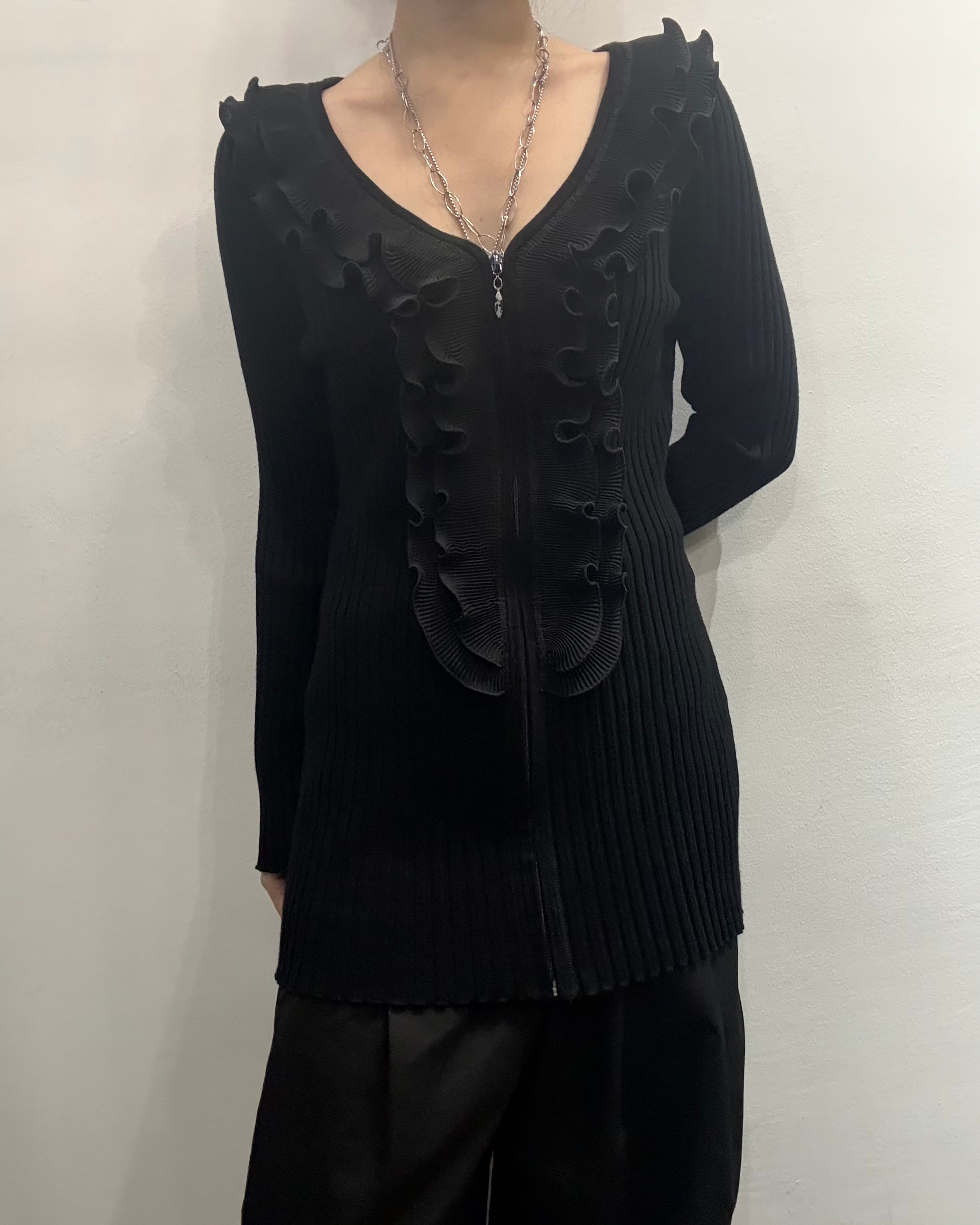 rib frill zip up jacket